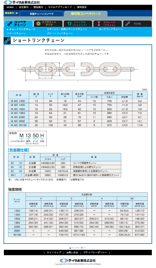 日本 TEISA短環鏈規格與性能主要針對「高強度」與「耐惡劣環境」設計,