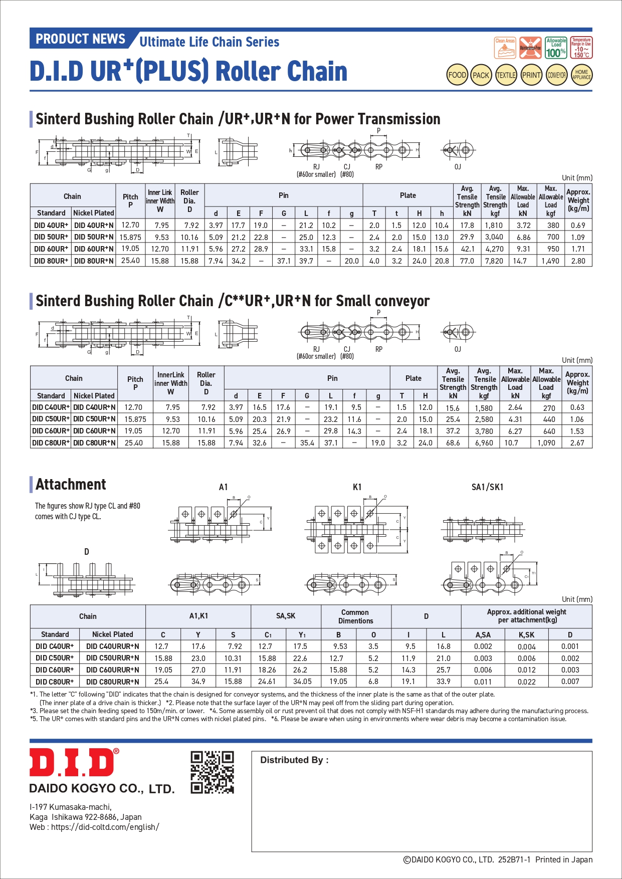日本D.I.D襯套燒結處理滾子鏈條品質升級進化!!